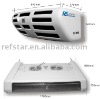 1. Item No.: RS-E30 2. Features: (1).Unique Aerodynamic Design (2). Serviceable design, unbeatable reliability (3). Fast cooling down, high refrigeration performance (4). Low operation cost (5). Easy to install and maintain (6). Multi-function program (7). Advance temperature control technology 3. Instructions: RS-E30 unit is 2 pieces split type unit model, meet frozen and chilled application requirements for small size refrigeration truck, the compressor drived by truck engine. For standby unit type, another compressor drived by motor. 4. System: Condensor Unit Super slim evaporator unit Vehicle compressor(Electromagnetic clutch) Digital screen smart control system Standby power packs(optional) 5. Refrigerant(Environment Friendly): HFC R404A(2.0kg) 6. Compressor: TM16(R404A) Cylinders: 6 Displacement: 162cc Max R.P.M.:3000 Japan original compressor 7. Evaporator air flow: 1200 m3/h 8. Defrost type: Auto/Manual hot gas defrost 9. Voltage: 12v DC/24v DC
